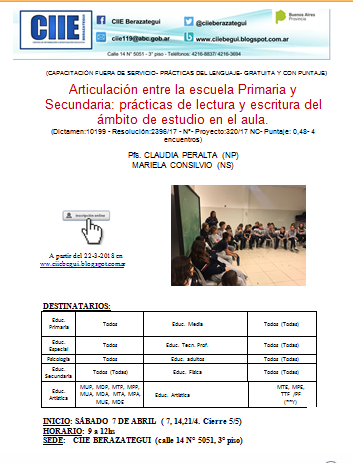 INSCRIPCIÓN: ON LINE www.ciiebegui.blogspot.com.ar.